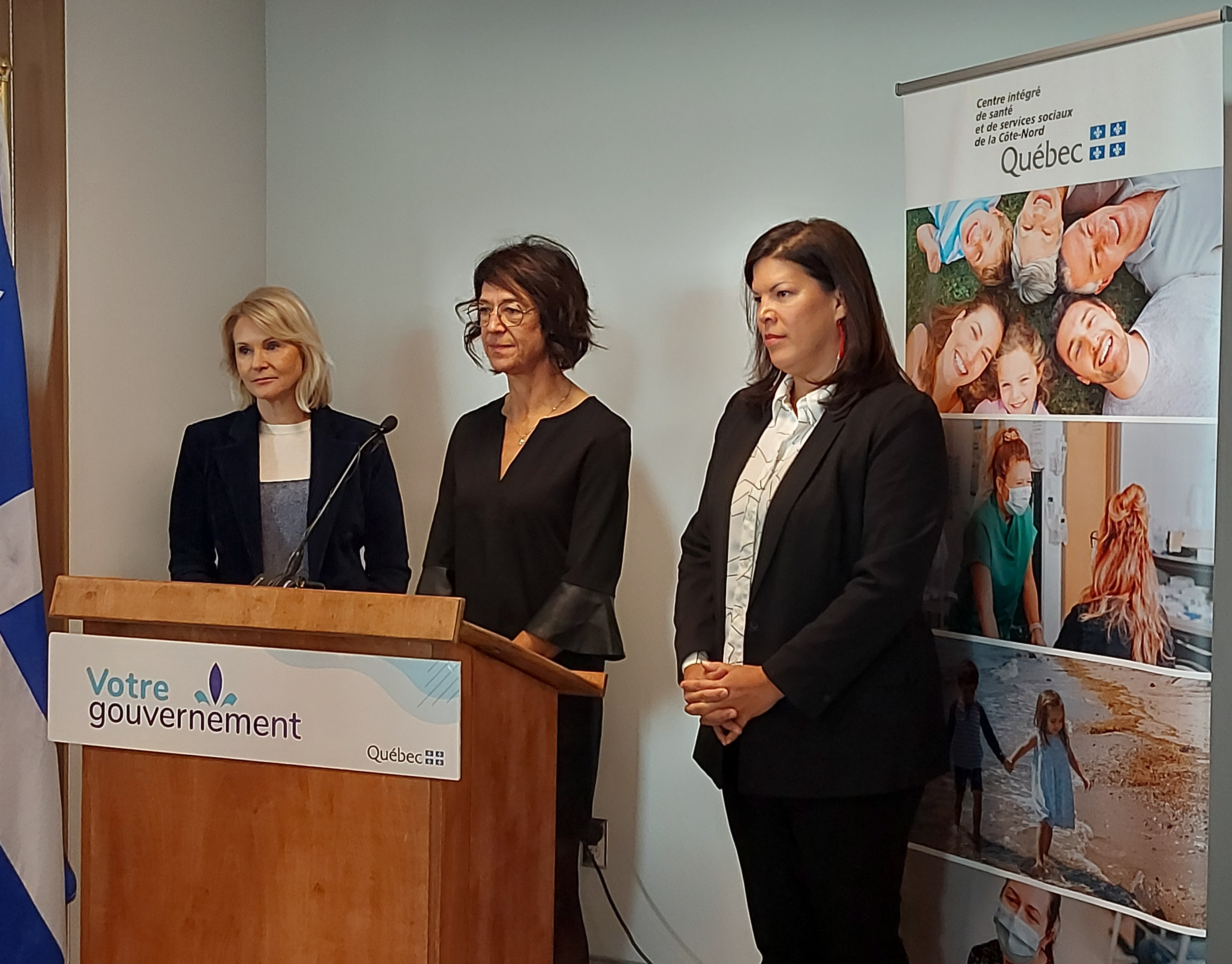 Sept-Îles, le 22 novembre 2024 - La ministre de l'Emploi, ministre responsable de la région de la Côte-Nord et députée de Duplessis, Kateri Champagne Jourdain, a procédé aujourd'hui, au nom du ministre responsable des Services sociaux, Lionel Carmant, à l'inauguration des nouveaux locaux de l'unité de psychiatrie interne de l'Hôpital de Sept-Îles. Pour l'occasion, Geneviève Biron, présidente et cheffe de la direction de Santé Québec, et Nathalie Castilloux, présidente-directrice générale par intérim du CISSS de la Côte-Nord, étaient également présentes.