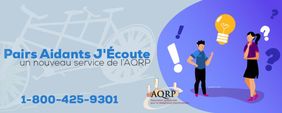Face à l'isolement et aux angoisses que propage la COVID-19, l'Association québécoise pour la réadaptation psychosociale (AQRP) lance Pairs Aidants J'Écoute!, une ligne d'écoute téléphonique et de soutien à l'ensemble de la population, mais aussi aux personnes qui vivent un trouble mental et qui ressentent le besoin de parler avec quelqu'un qui comprend. Le numéro à composer est le 1 800 425-9301.