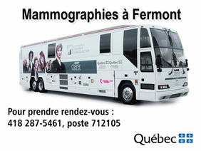 Baie-Comeau, le 1er octobre 2025 - L'unité mobile de mammographies CLARA sera à Fermont du 24 au 27 octobre 2025. Opérée par l'Institut national de santé publique du Québec (INSPQ), CLARA est un autocar doté d'un équipement radiologique permettant de réaliser des mammographies dans le cadre du Programme québécois de dépistage du cancer du sein (PQDCS).