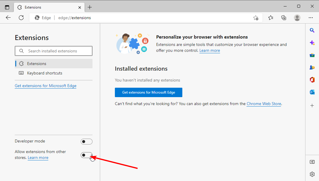 2. Sélectionnez l'option Autoriser les extensions d'autres magasins (Allow extensions from other stores) dans le coin inférieur gauche.